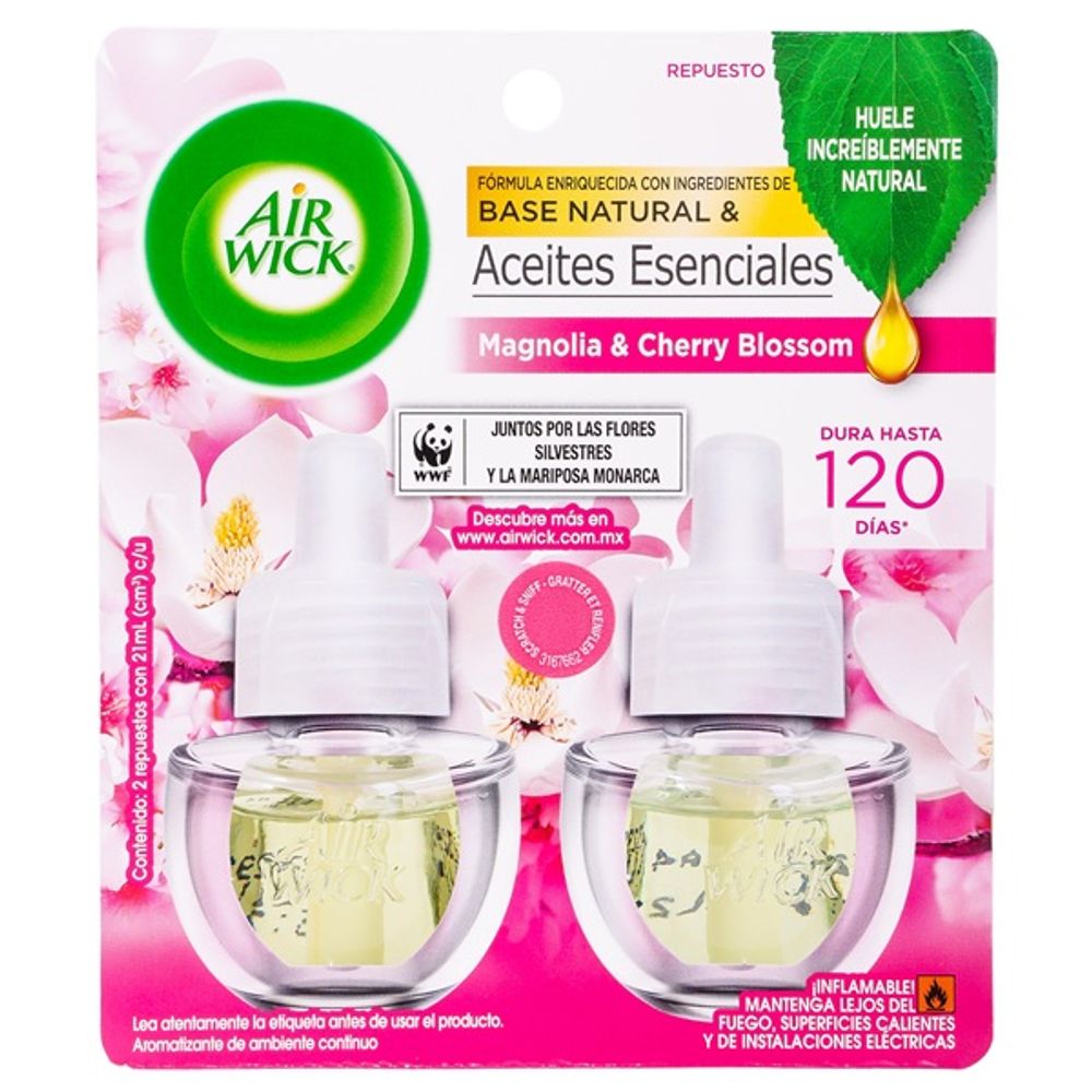 Aromatizante eléctrico Air Wick magnolia cherry con 2 piezas de 2 ml