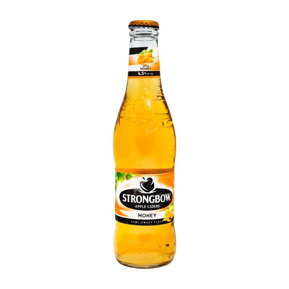 Bebida alcohólica Strongbow Honey 330 ml, refrescante sidra con sabor a miel que ofrece un balance perfecto entre dulzura y nota afrutada. Con un toque ligero y burbujeante, es ideal para disfrutar fría en reuniones o momentos de descanso. Su presentación en lata de 330 ml es práctica y fácil de llevar.