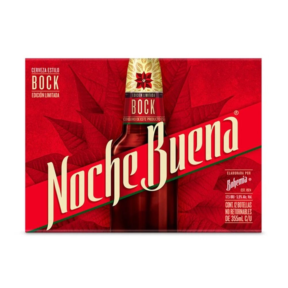 El Pack de Cerveza Noche Buena Bohemia de 12 botellas de 355 ml es una opción ideal para las celebraciones. Esta cerveza de edición especial, de sabor suave y ligeramente maltoso, se distingue por su toque especiado y su color ámbar profundo. Perfecta para acompañar las fiestas y momentos especiales, su sabor único y refrescante la convierte en una bebida clásica para disfrutar en grupo.