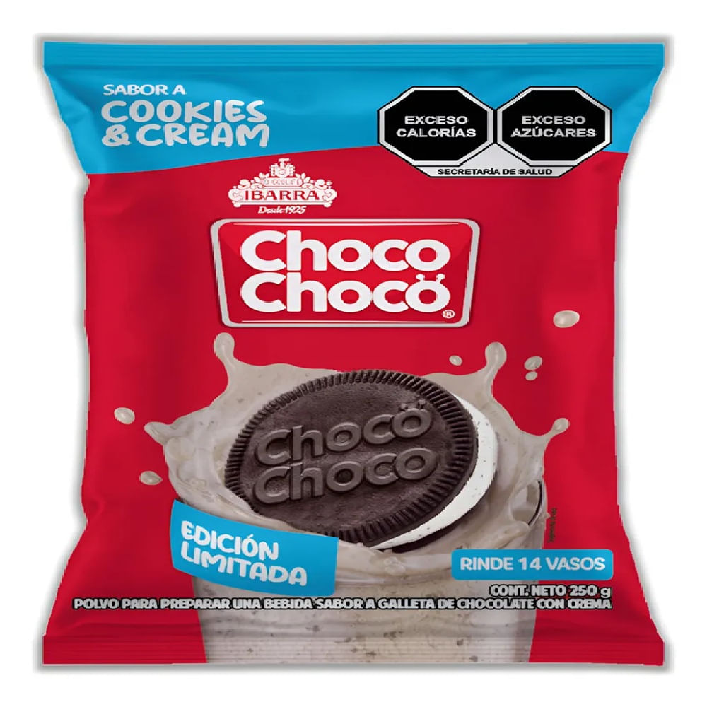 Chocolate Choco Choco polvo cookies & cream 250 g. Disfruta una deliciosa bebida sabor cookies & cream con la mezcla perfecta de chocolate y galleta. Su presentación en polvo es ideal para preparar bebidas cremosas de forma rápida y sencilla. Perfecto para acompañar el desayuno o disfrutar en cualquier momento con leche fría o caliente.