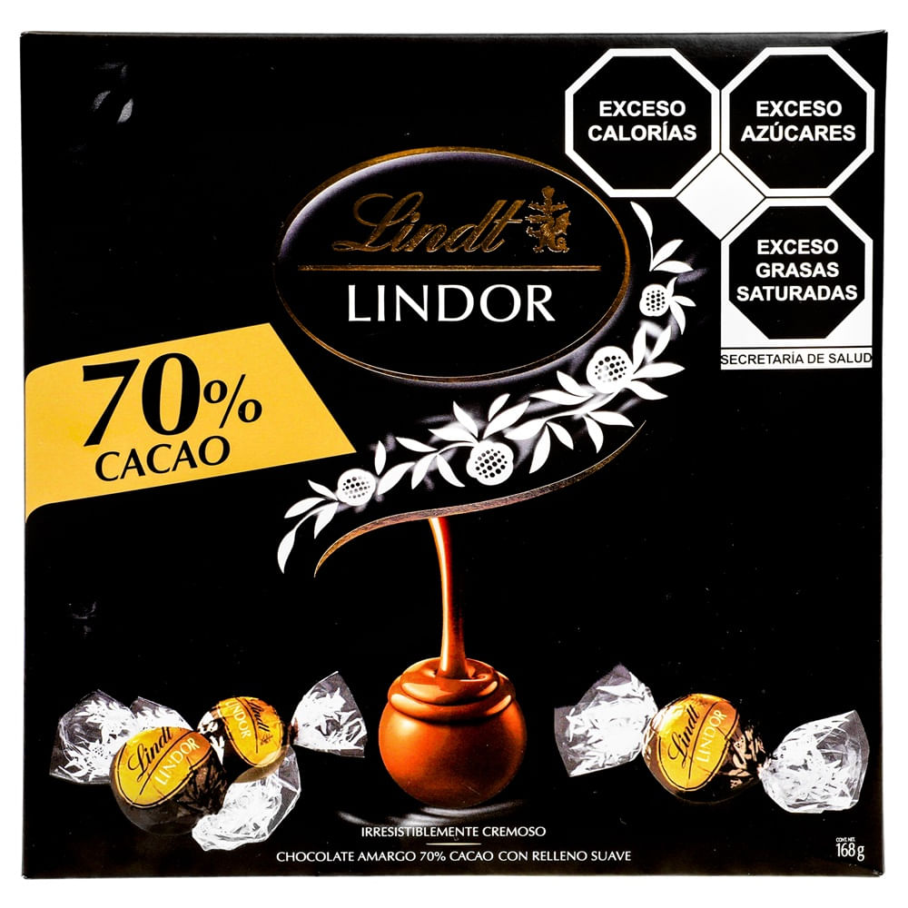 Chocolate Lindt Lindor 70% cacao 168 g, una selección de trufas de chocolate amargo con un equilibrio perfecto entre intensidad y suavidad. Su cubierta firme de chocolate oscuro envuelve un relleno cremoso que se derrite en el paladar, creando una experiencia indulgente en cada bocado. Elaborado por maestros chocolateros suizos, este chocolate destaca por su alto contenido de cacao que aporta un sabor más profundo, ligeramente amargo y elegante, ideal para quienes prefieren opciones menos dulces.