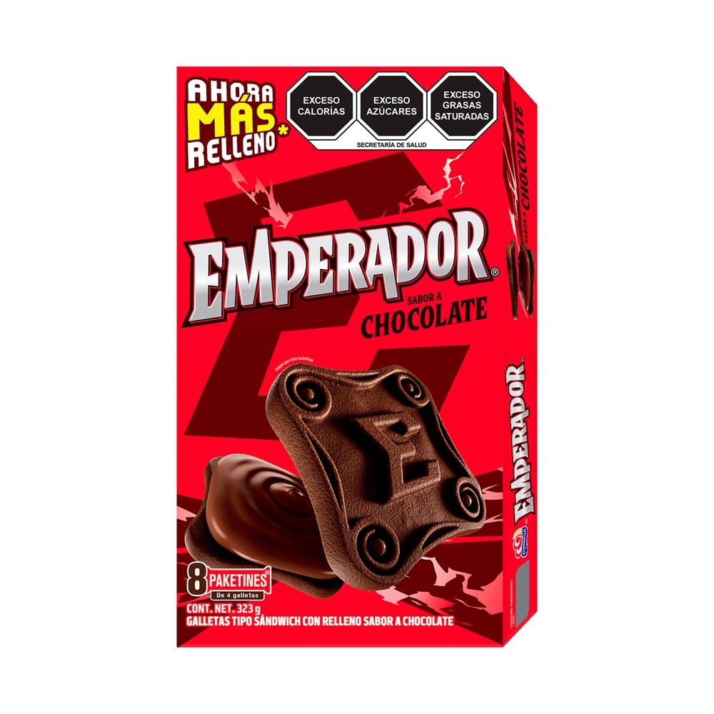 Domina tu antojo con el sabor legendario de Emperador Chocolate. Estas galletas tipo sándwich son el equilibrio perfecto entre dos capas crujientes con un toque de cacao y un abundante relleno cremoso sabor a chocolate. Diseñadas para quienes no se conforman con poco, cada bocado ofrece una experiencia intensa que te llena de energía y satisfacción en cualquier momento del día.