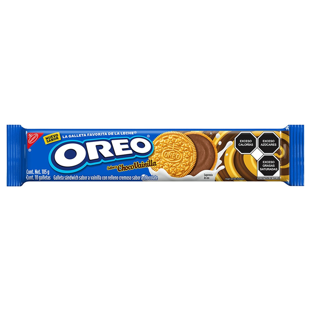 Galletas Oreo Choco Vainilla en presentación de 105 g, con una combinación deliciosa de galleta sabor vainilla y relleno cremoso de chocolate. Su textura crujiente por fuera y suave por dentro las hace perfectas para disfrutar en cualquier momento. Incluyen aproximadamente 10 galletas por paquete, ideales para llevar, compartir o acompañar con leche o café. Una opción diferente a la clásica Oreo, perfecta para quienes buscan un sabor dulce y original en cada mordida.