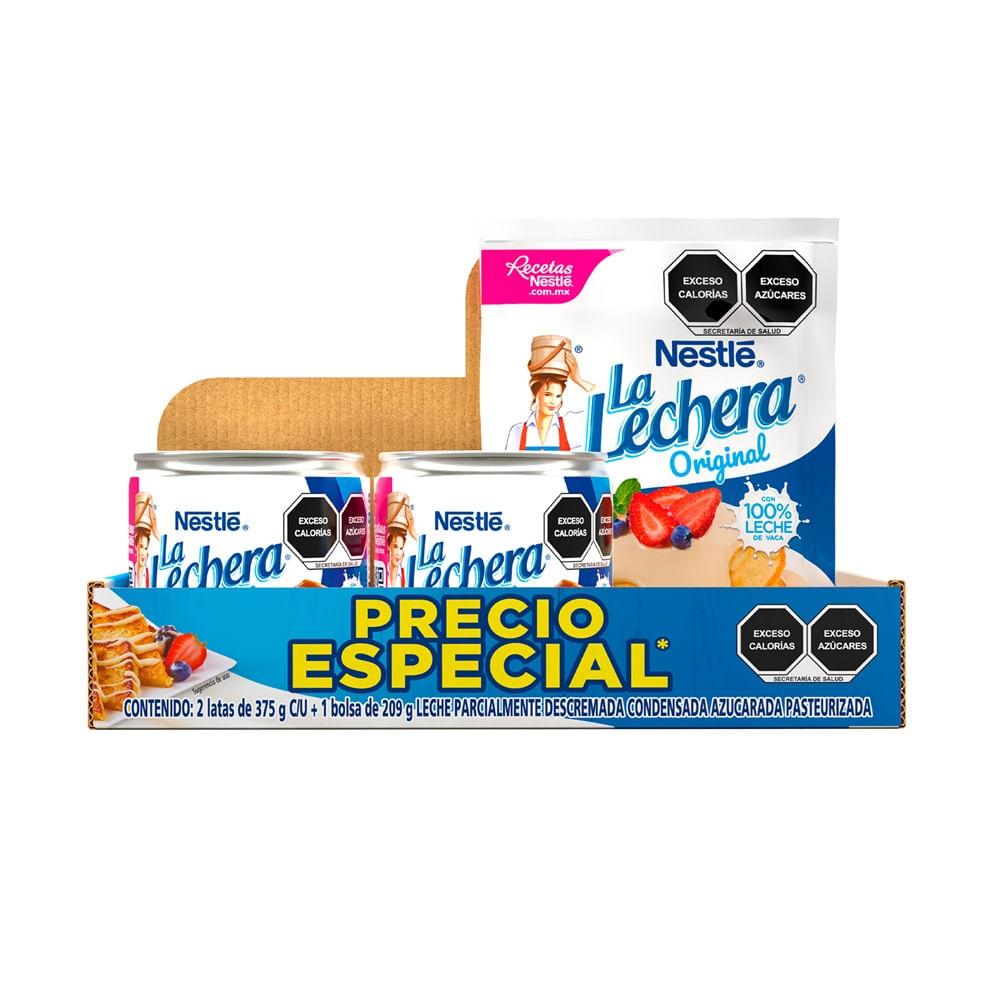 Leche condensada La lechera 2 piezas de 375 g más bolsa 209 g