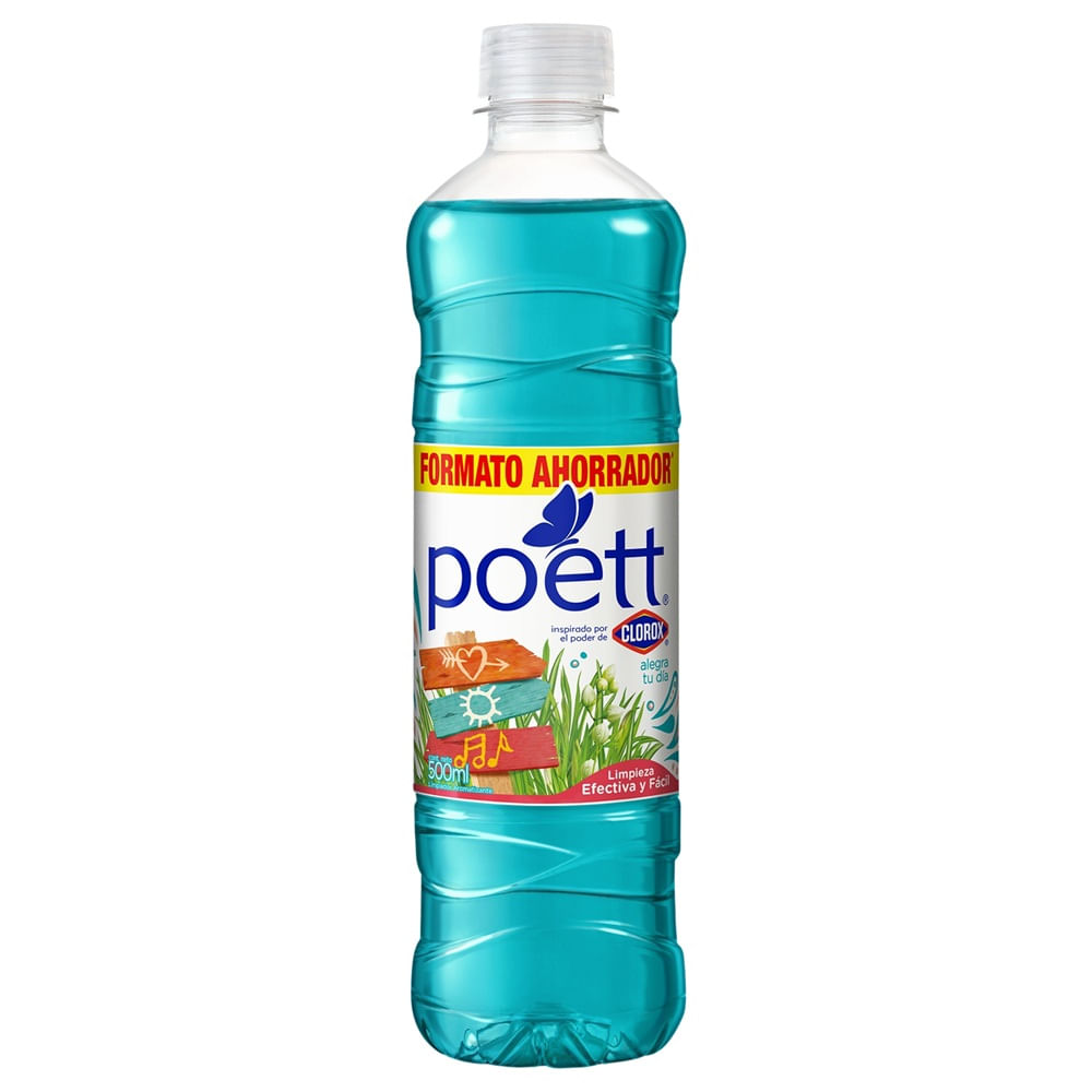 Limpiador Poett Alegra tu día en presentación de 500 ml, ideal para mantener tus espacios limpios y con un aroma agradable y duradero. Su fórmula es versátil, ya que puede utilizarse en pisos, baños, cocina y otras superficies del hogar. Cuenta con una fragancia inspirada en notas frutales, florales y vainilla, que brinda una sensación fresca y agradable en cada uso. Puede usarse diluido para limpieza diaria o directo en áreas específicas, ofreciendo una limpieza efectiva sin necesidad de enjuague en la mayoría de superficies.