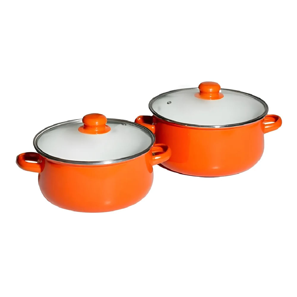 Juego de ollas elaboradas en acero con recubrimiento porcelanizado que brinda mayor resistencia y durabilidad. Incluye 2 ollas de diferentes tamaños, ideales para preparar sopas, caldos, guisos o pastas. Su material ayuda a una distribución uniforme del calor para una mejor cocción. Son prácticas, fáciles de limpiar y perfectas para el uso diario en la cocina.