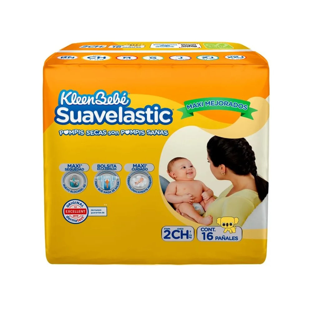 Pañal Kleenbebé Suavelastic chico 16 piezas