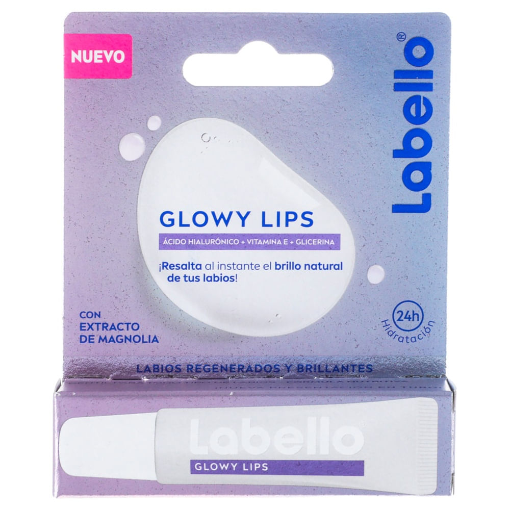 Protector labial Labello Glowy Lips, ideal para mantener los labios hidratados, suaves y con un brillo natural. Su fórmula contiene ácido hialurónico, vitamina E y glicerina, ingredientes que ayudan a nutrir y retener la humedad en los labios. Proporciona hasta 24 horas de hidratación continua, ayudando a reparar la resequedad y dejando una sensación ligera y cómoda durante el día.