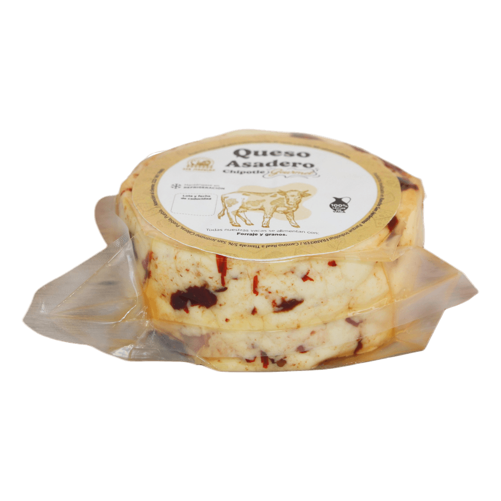 Lleva el auténtico sabor del campo a tu mesa con un giro audaz: el Queso Asadero Rancho San Jerónimo con Chipotle. Este queso artesanal combina la textura elástica y suave del asadero tradicional con trozos seleccionados de chile chipotle, logrando un equilibrio perfecto entre la cremosidad de la leche 100% pura de vaca y una nota ahumada irresistible. Es el ingrediente que transformará tus platillos sencillos en una experiencia gastronómica llena de personalidad.