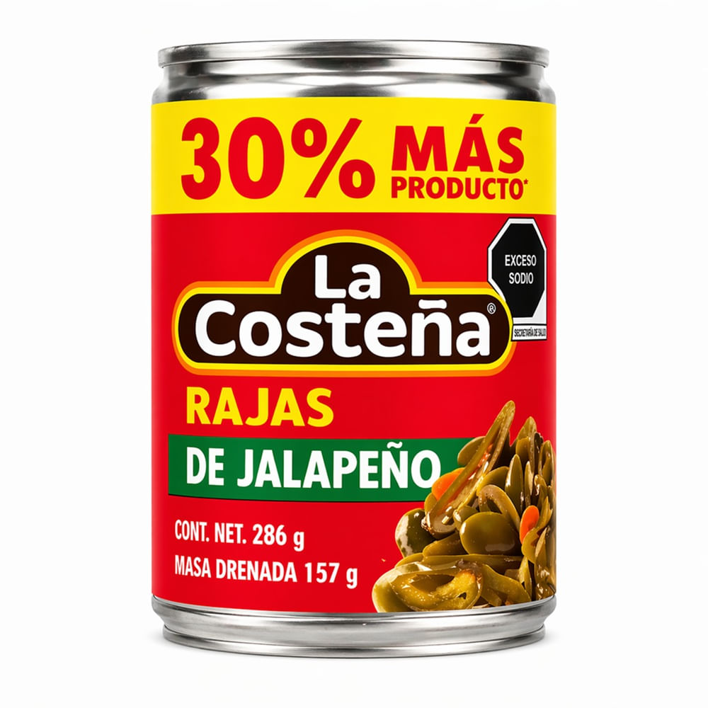 Las Rajas La Costeña de jalapeño 286 g son chiles jalapeños en tiras conservados en escabeche, con un sabor característico entre ácido, picante y ligeramente especiado. Son ideales para acompañar todo tipo de platillos como tortas, tacos, tostadas o comidas caseras, aportando un toque mexicano auténtico. Su textura es suave pero firme, perfecta para complementar alimentos sin perder su consistencia. Su presentación de 286 g es práctica y lista para servirse en cualquier momento.