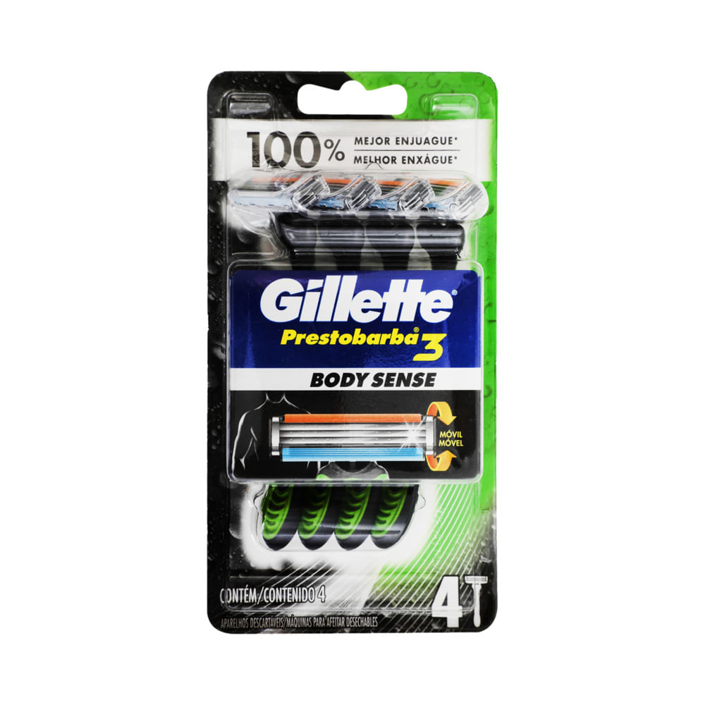Los rastrillos Gillette Prestobarba 3 Body Sense en presentación de 4 piezas están diseñados especialmente para ofrecer una afeitada suave, segura y cómoda en todo el cuerpo. Su tecnología avanzada y su diseño ergonómico brindan una experiencia de rasurado superior, ideal para quienes buscan precisión y cuidado en zonas sensibles.
