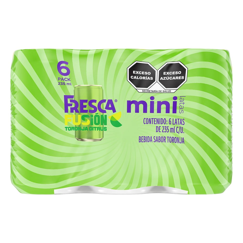 El Refresco Fresca Fusión lata 6 piezas de 235 ml es una bebida gasificada con sabor a toronja, caracterizada por su balance entre lo dulce, ácido y ligeramente amargo. Ofrece una sensación refrescante ideal para acompañar comidas, reuniones o momentos de convivencia, además de ser una opción popular para mezclar en bebidas. Su presentación en paquete de 6 latas es práctica para compartir o tener varias porciones listas para consumir.
